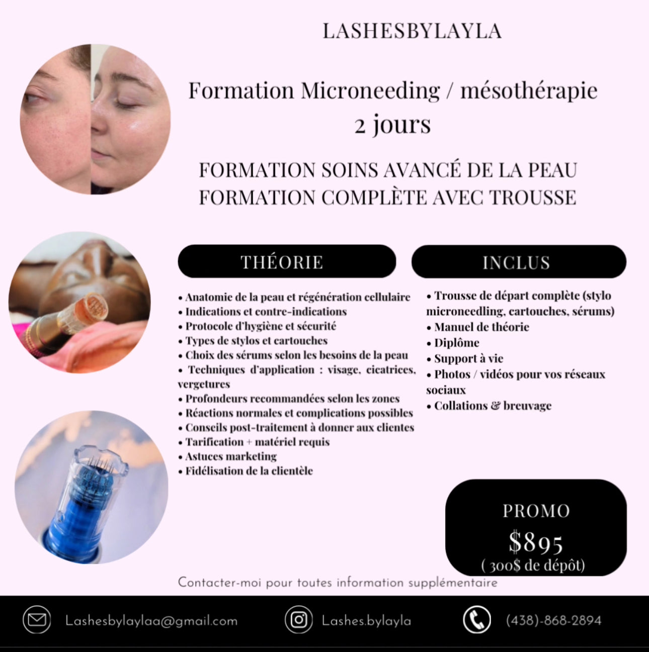 Plonge dans l’univers des soins avancés de la peau avec notre formation complète en microneedling et mésothérapie. Conçue pour les esthéticiennes souhaitant perfectionner leurs compétences et offrir des résultats visibles à leur clientèle, cette formation inclut à la fois théorie et pratique, ainsi qu’une trousse de départ complète.